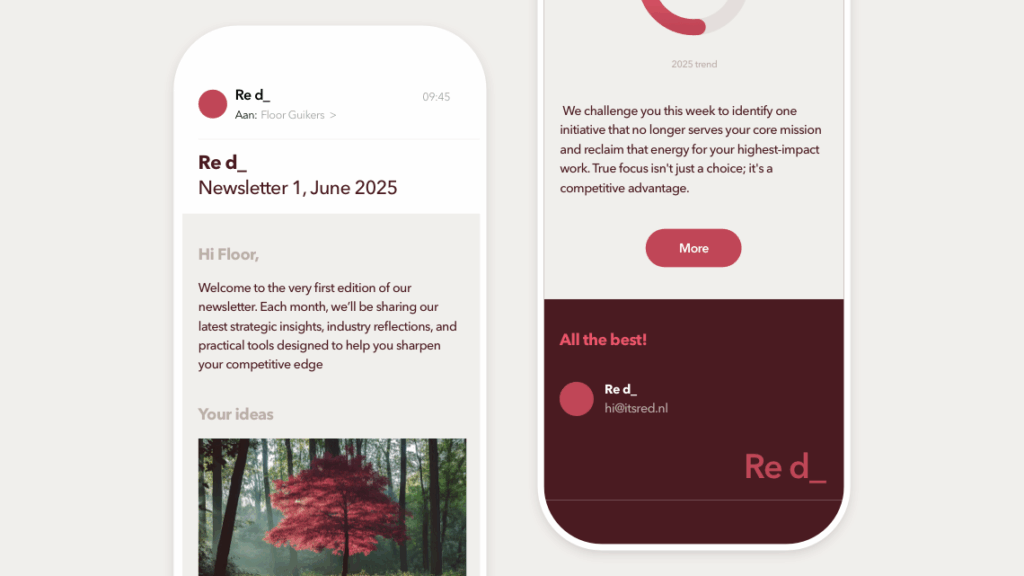 Tegelijk brachten we steeds een frisse, kritische blik in. Niet om het over te nemen, maar om keuzes te toetsen aan de markt en te checken of ze niet alleen goed voelden, maar ook logisch en onderscheidend waren.